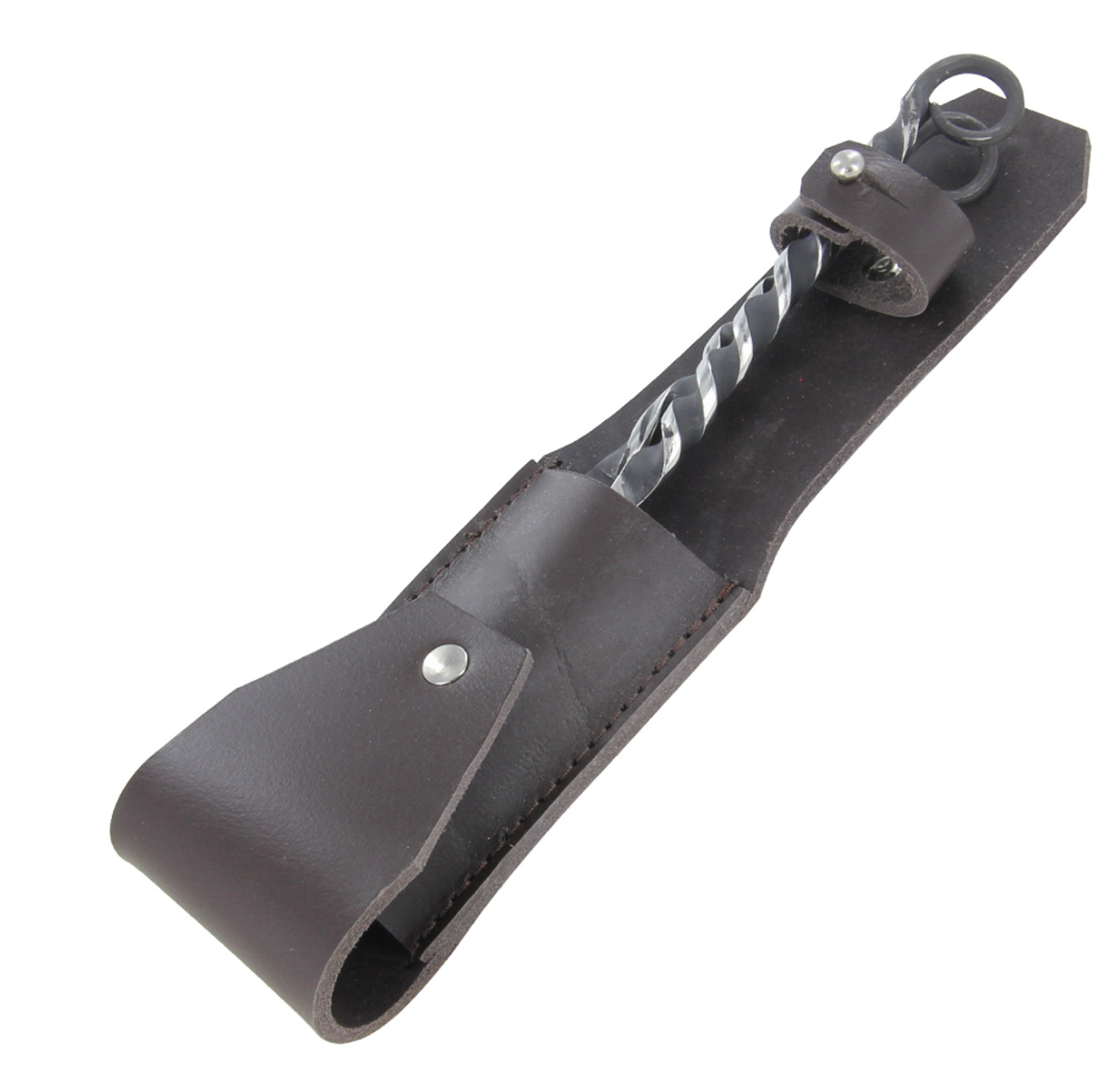 Whether you are having a hefty meal at a Renaissance Fair, attending a feast, or just want to have a cool new set of cutlery to add to your dining wear, be sure you are prepared with this fully functional and authentic-looking handmade medieval silverware set. This fork and knife set is forged entirely of stainless steel, and features an intricate twisted design with a decorative loop on the end. The fork head features four tines, while the knife features a tapered, rougher-looking curved edge for successful piercing and cutting. The fork is polished to give a sleek shine but also keep a medieval feel. Also comes with a handmade brown leather sheath for easy and safe storage.*Please note that the size of the set is approximate, because it is handmade and every set is unique.